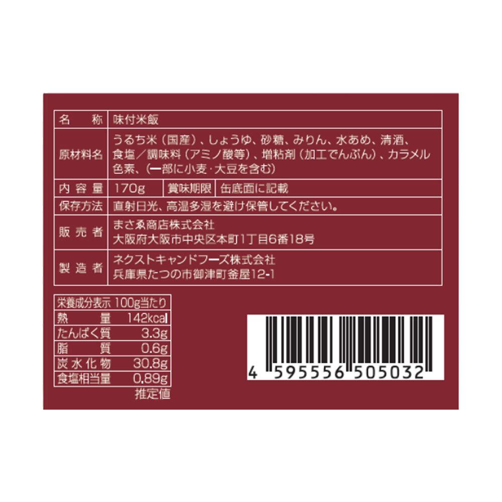 昭和三十八年創業の大阪のうなぎ屋が丹念に作り続けたきたたっぷりのたれを国産ヒノヒカリに混ぜ合わせたご飯の缶詰です。